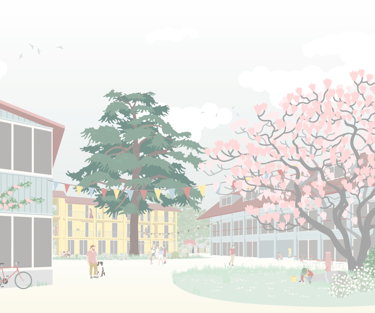 La séquence rue-cour-jardin est une caractéristique spatiale du village. Elle témoigne d’une gradation d’intensité entre les espaces publics (rue) et privés (jardins). La valeur intermédiaire de la cour est primordiale pour les réunir. De ce point de vue, le projet